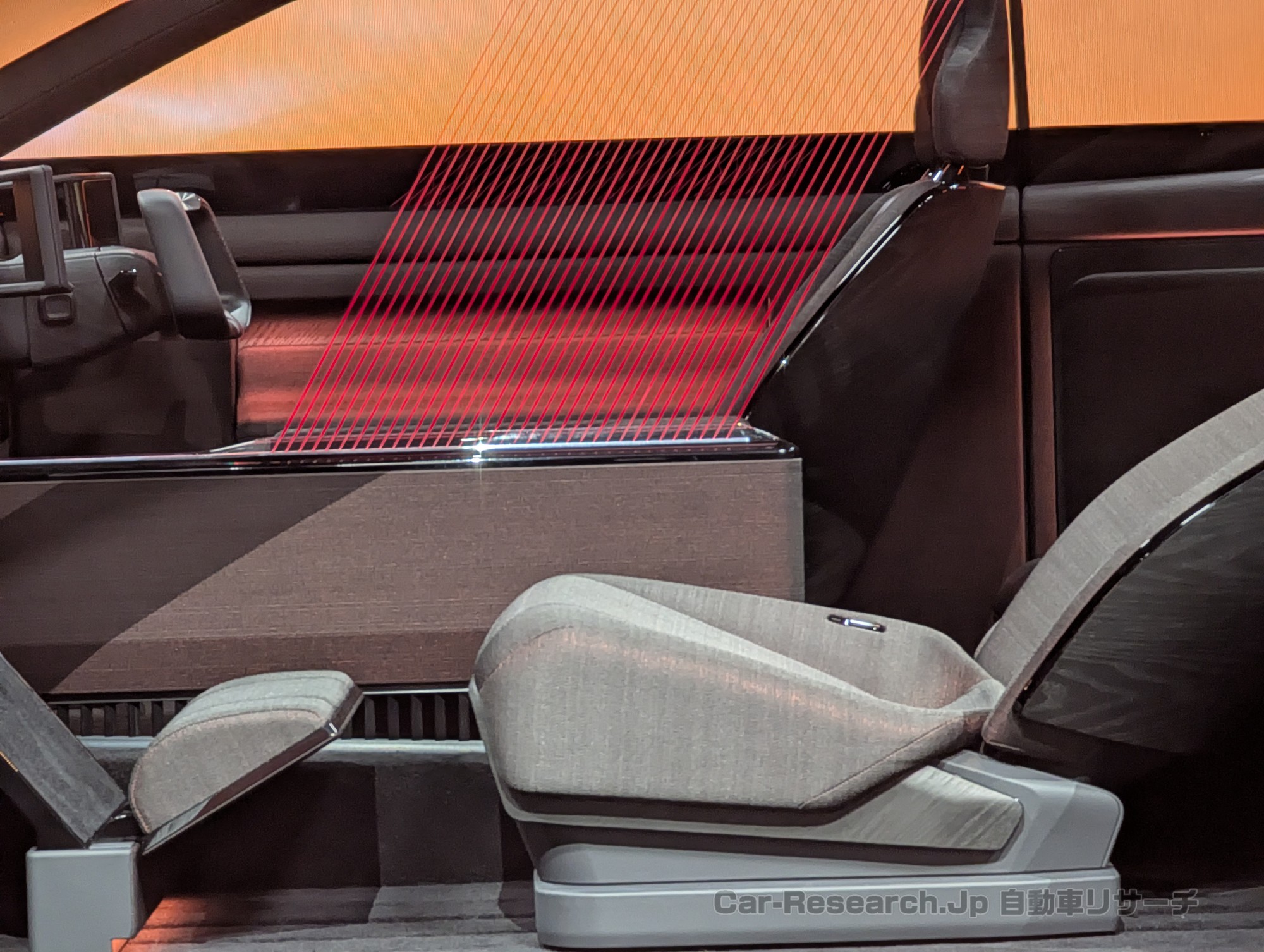 ドアレイアウトは“観音開き”やBピラーレスを想起させる見せ方が採用されています。これは展示的ギミックにとどまらない可能性があるかもしれません。