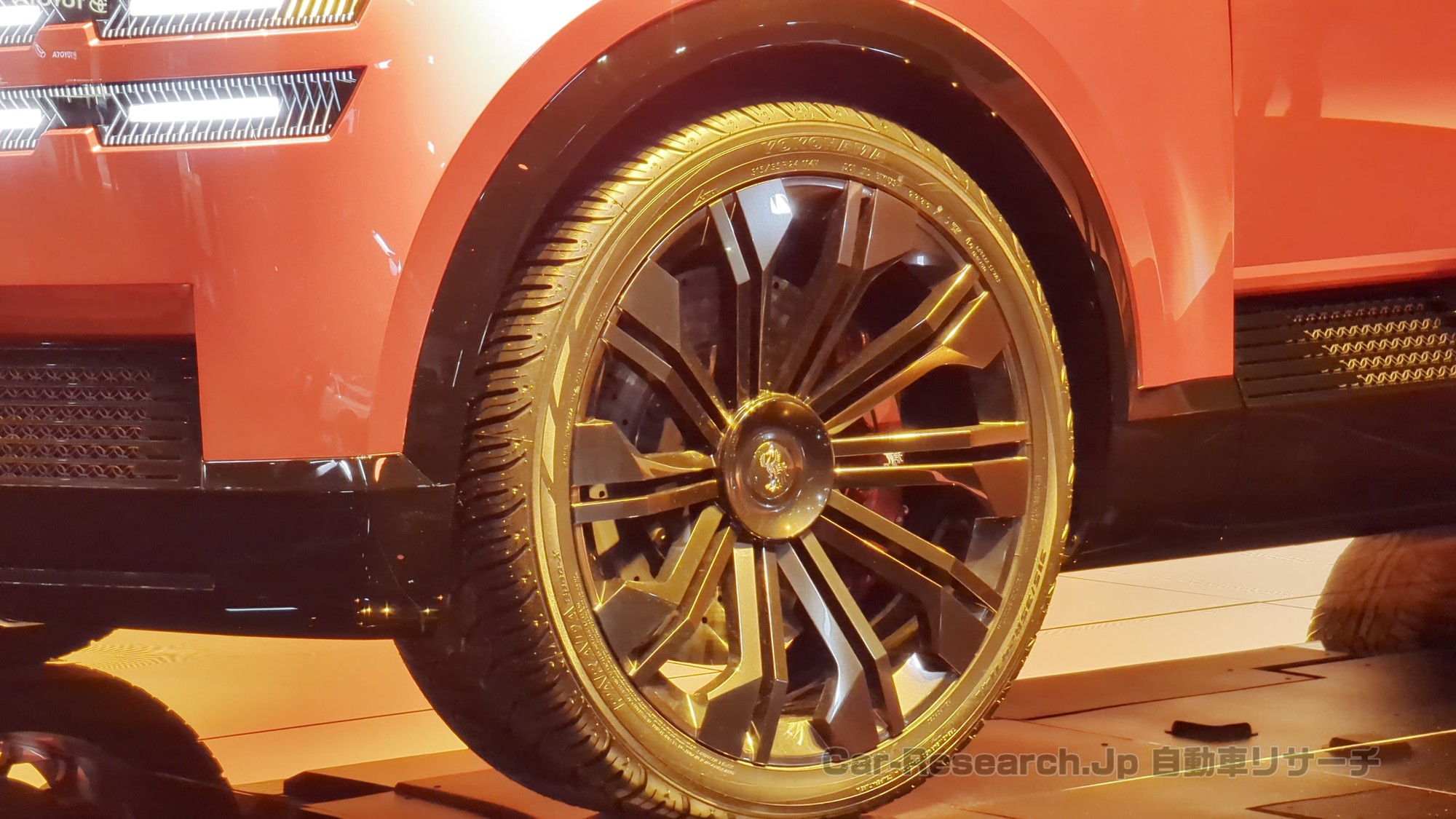 ホイールは矢羽根モチーフのスポークで統一され、回転時の視覚効果まで計算したかのような“たしなみ”が通底しています。大型のドアはキャビン全体の見せ方を左右する要素として扱われ、前方スライド機構の演出と相まって、後席志向のパッケージを強く印象づけます。