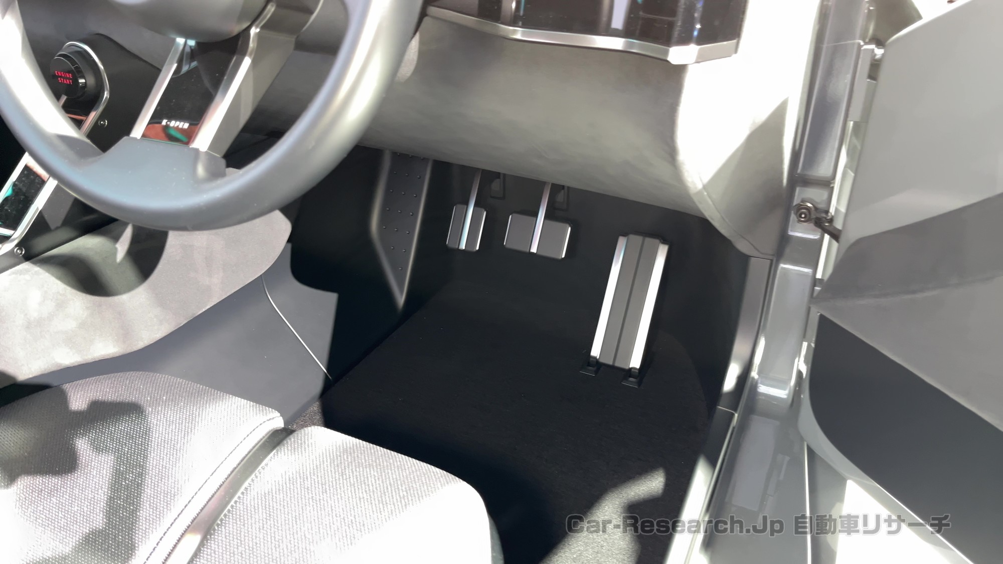 エンジンはハイゼットカーゴの直列3気筒ターボを縦置き搭載とされ、商用車用のスラント配置を生かして低重心化を図る考え方が示されました。現行ハイゼット同様にCVTと5MTの設定が“技術的に用意しやすい”という見通しも語られ、量産への具体判断は別としても、FRのコペンを実機の積み上げで詰めていく段階に入ったことが現地で確認できました。