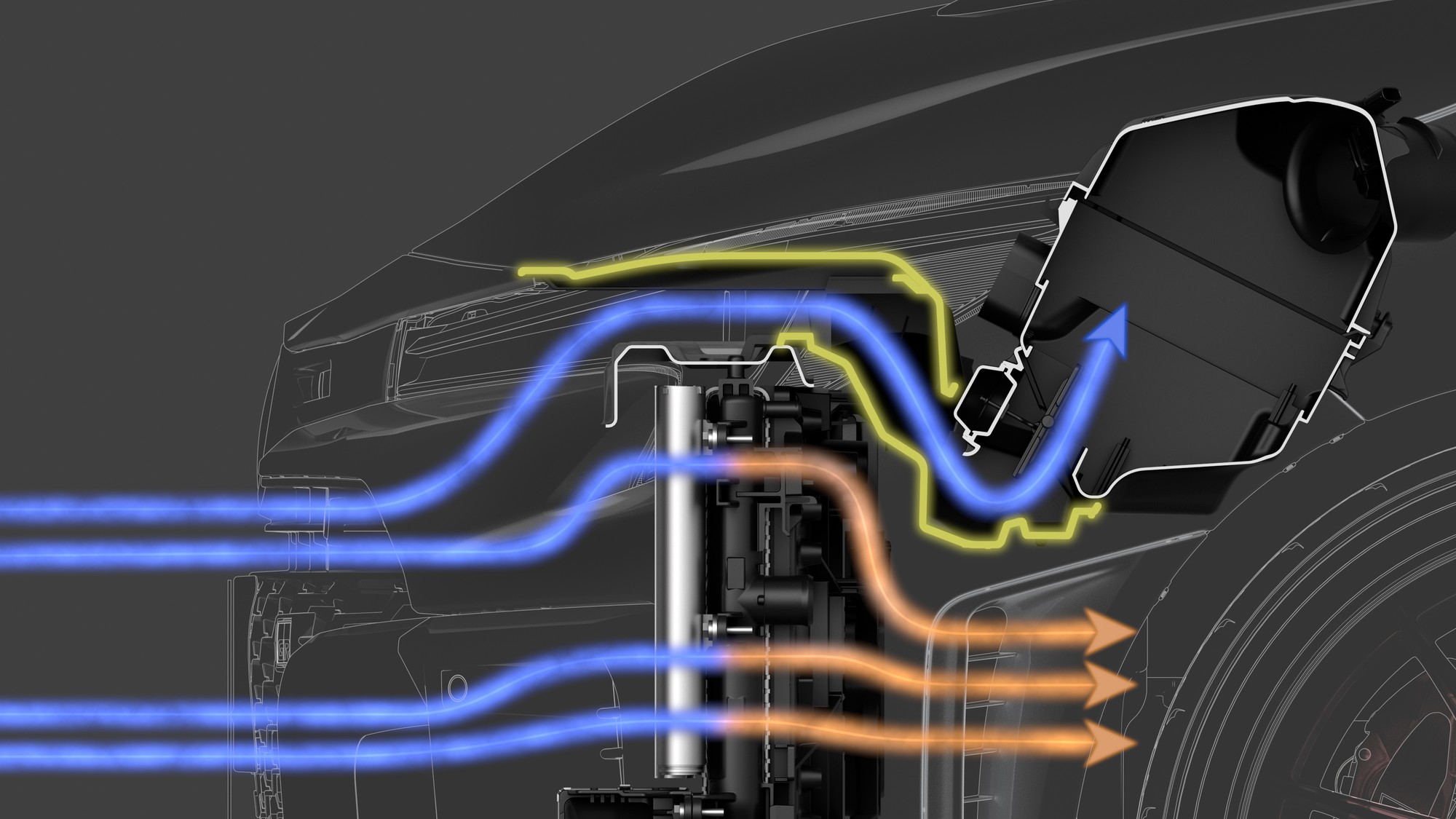 フロント部では、グリルの横にサイドエアカーテンが配置され、空気がフロントホイールの後ろの出口に流れ、ホイールハウスから逃げることができます。2024年にはこのダクトの形状が再設計され、フロントとリアのホイールハウスの下にアルミシートが配置され、車両の安定性をサポートするのに役立っています。Circuit Editionでは、フードとフェンダーのダクトがエンジンベイを通って空気の流れを提供しています。