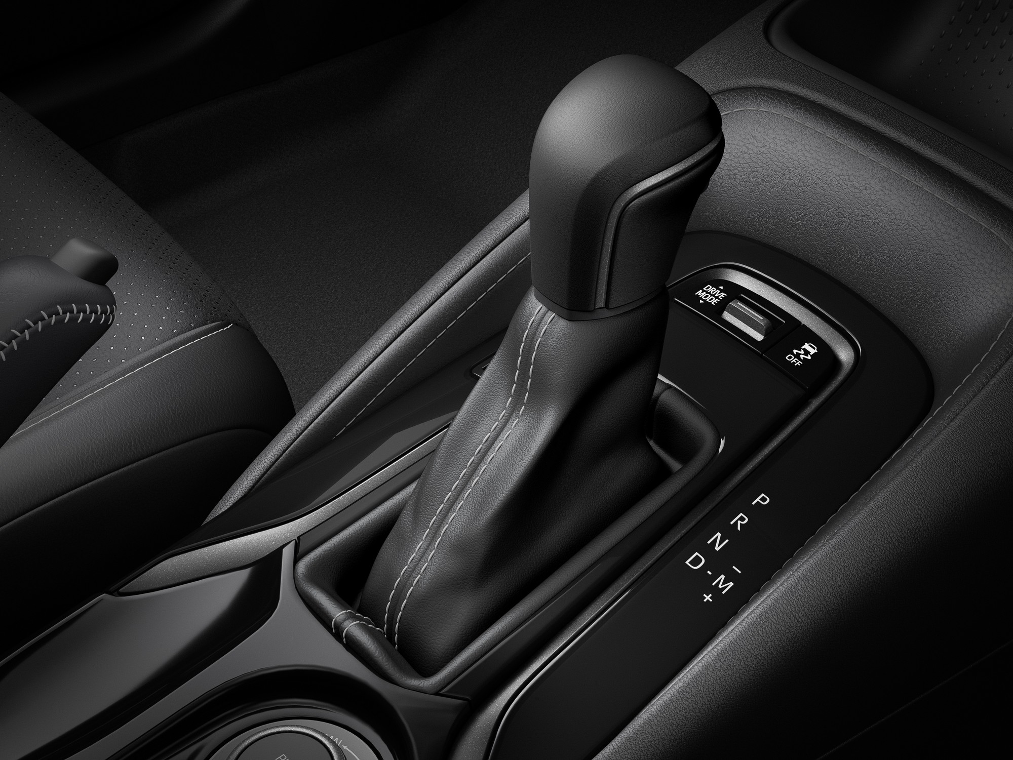 ショートストロークのシフトレバーを採用し、ステアリングから自然に腕を下した位置に配置することで素早いシフト操作を可能とする。
