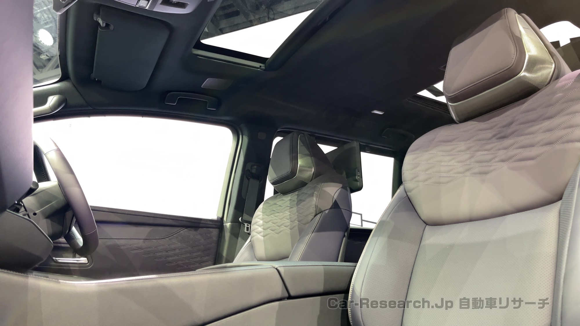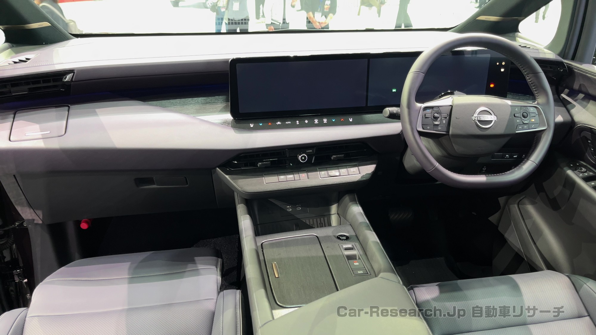 ドライバーズシートからは14.3インチの横長ディスプレイ2枚の装備が確認でき、これらはフル液晶メーターとディスプレイオーディオであることが想定されます。