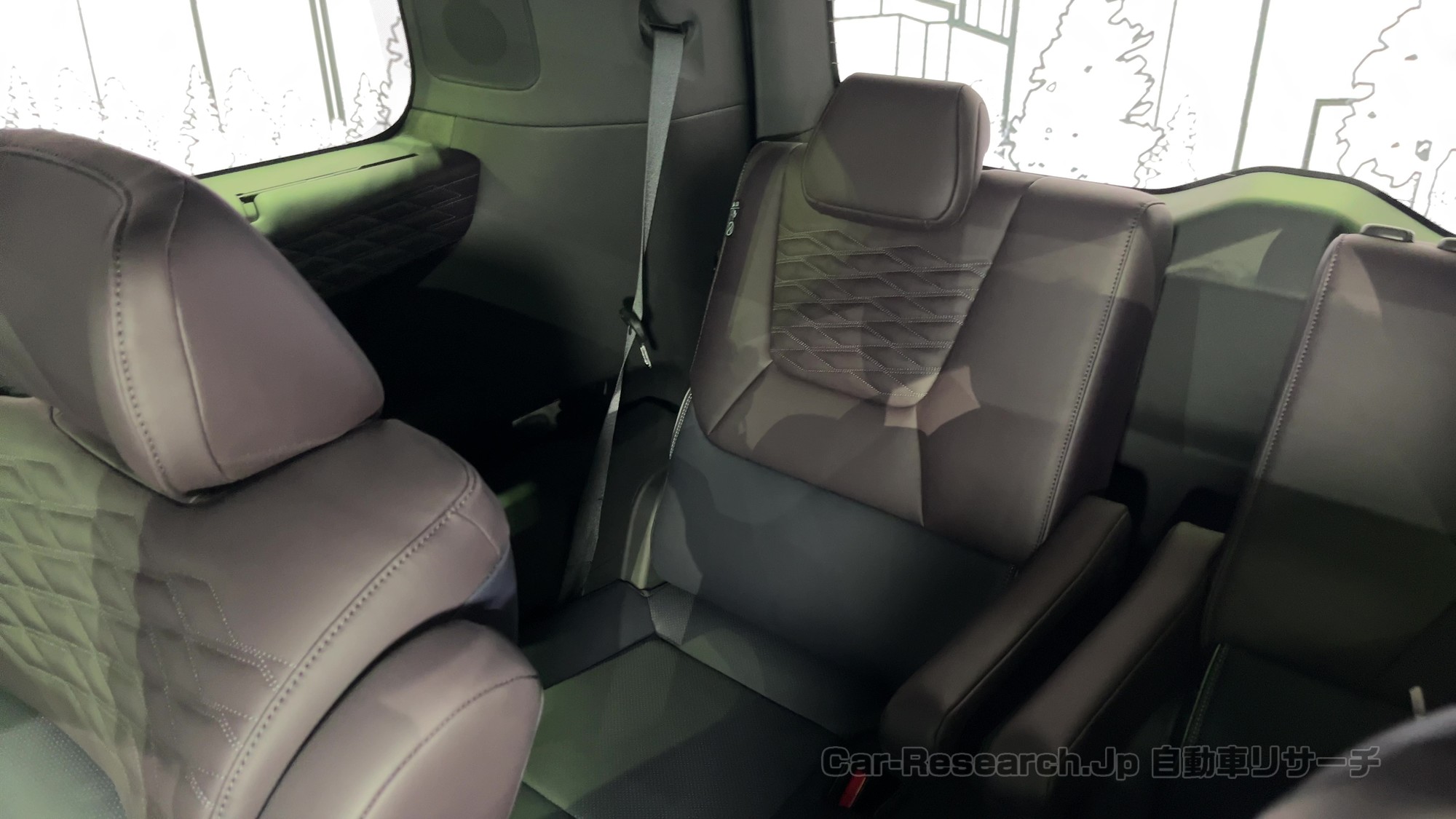 - 3列目は跳ね上げ式格納を現地で確認。床面を一定に保ち、長尺積みにも対応。