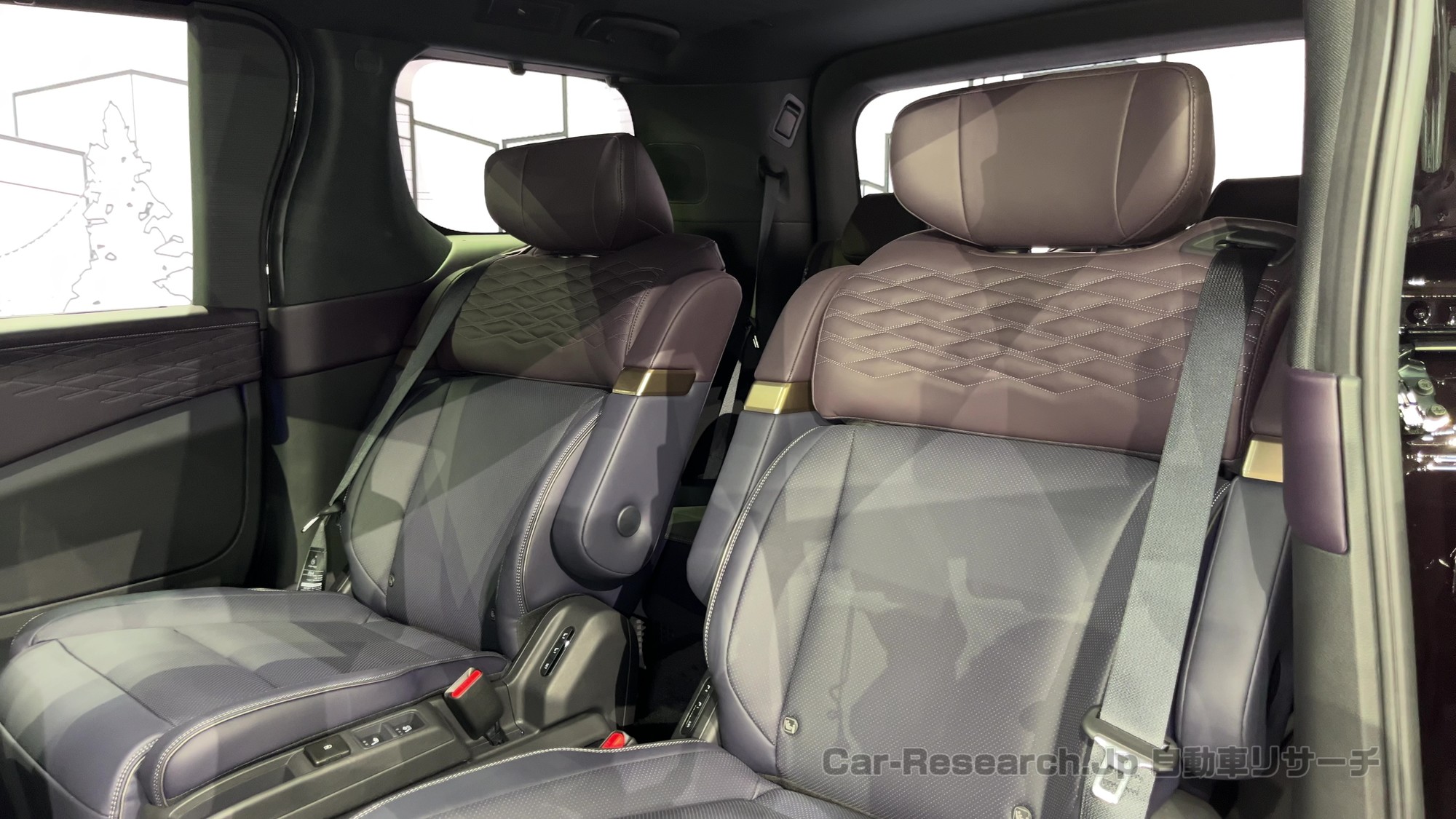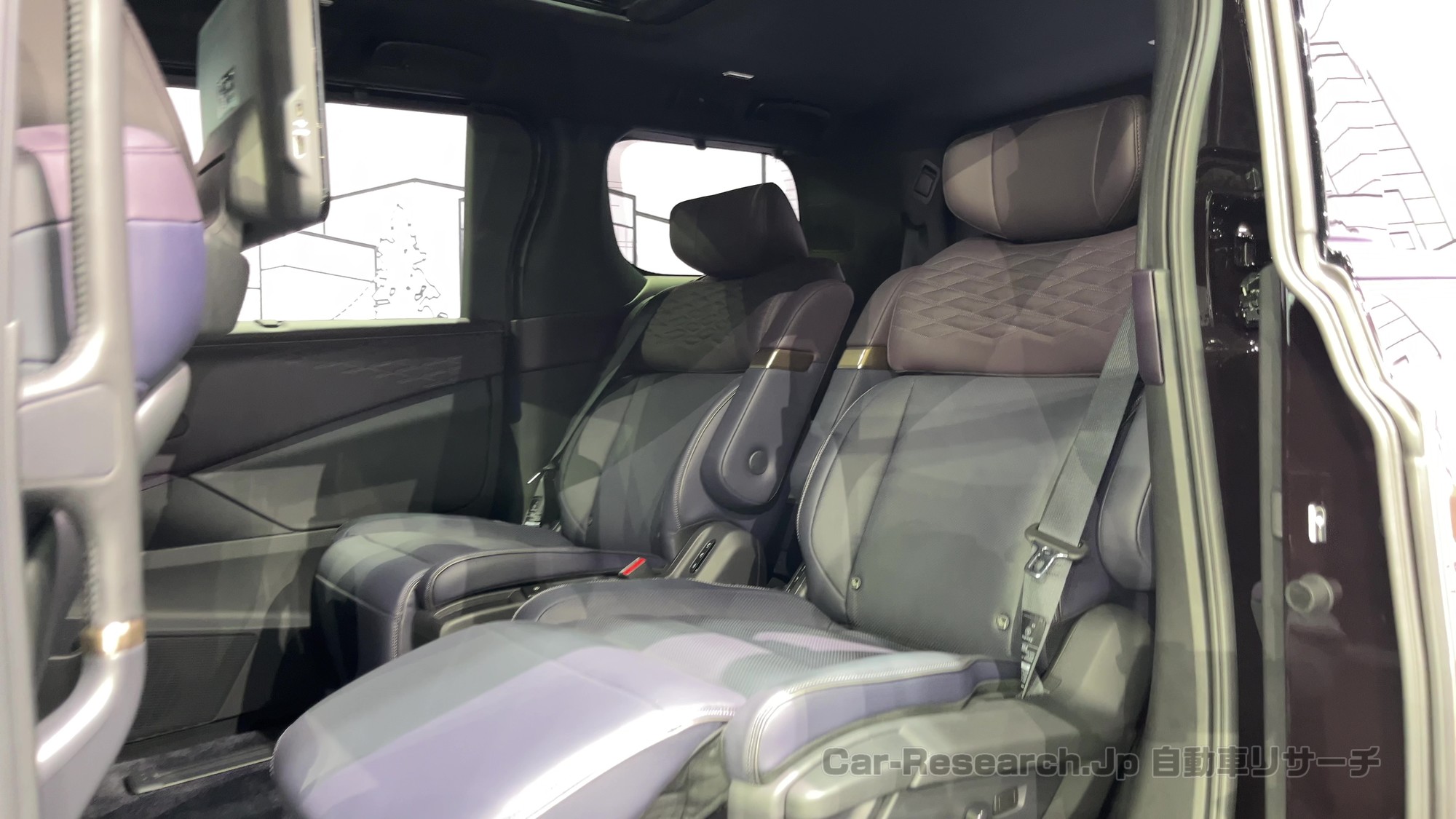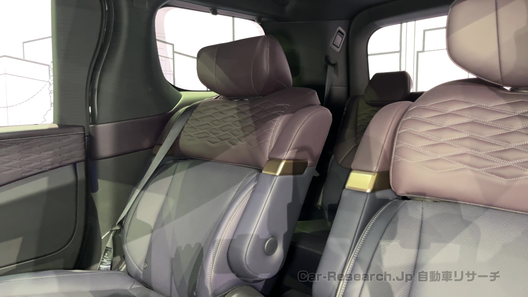 オットマンは助手席と2列目シートに採用されます。2列目シートはゼログラビティ思想のキャプテンシートが備わります。跳ね上げ式の3列目格納による荷室がレイアウトされます。