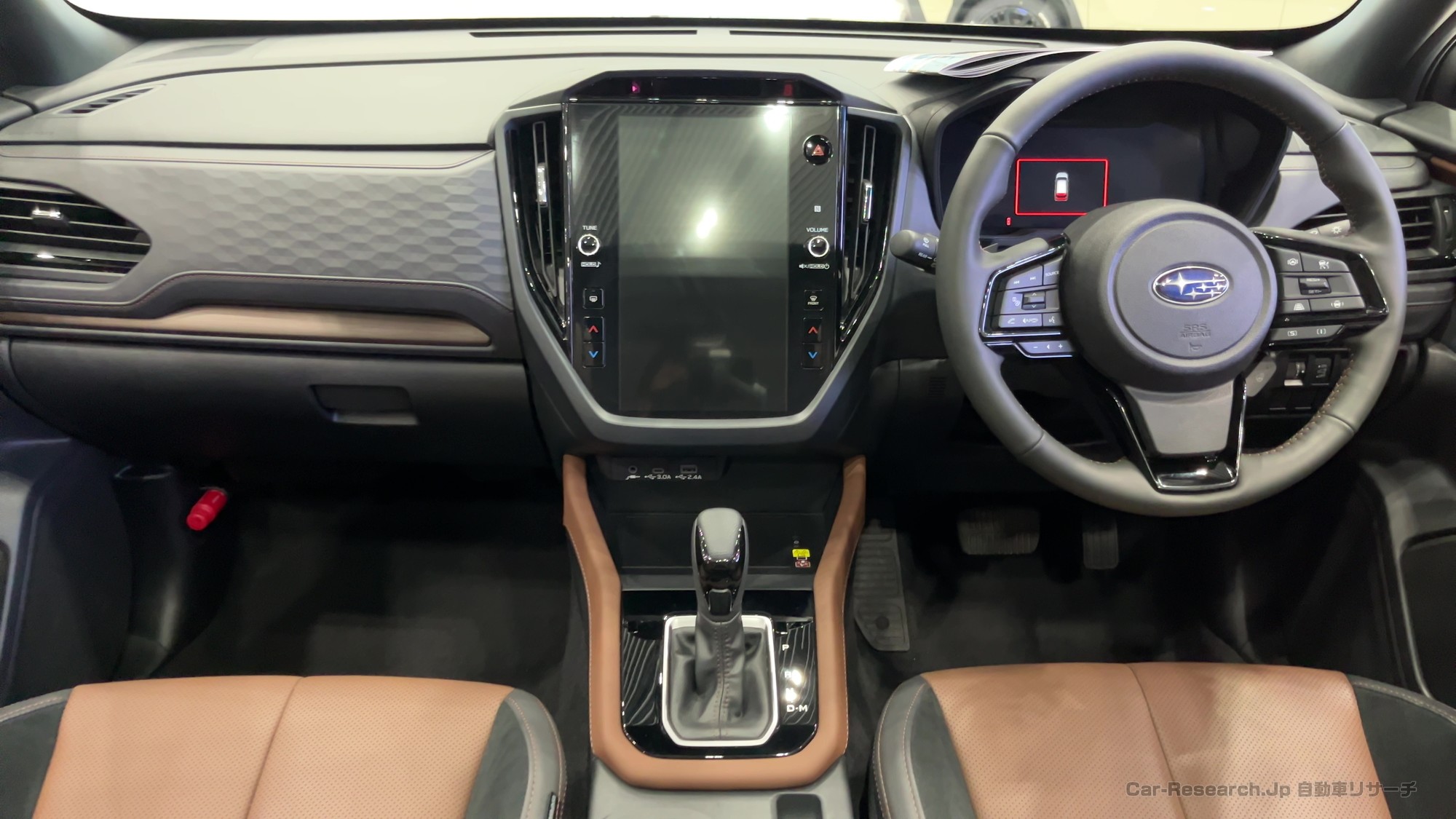 新型フォレスターのインパネ中央には、縦長の大画面ディスプレイが配置されています。写真で見ると先進的で迫力もありますが、使い勝手については厳しい評価も目立ちます。