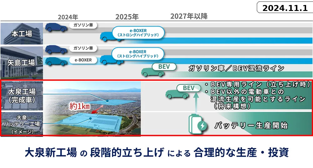 次世代ハイブリッドの量産側については、2024年のマルチパスウェイワークショップ資料で、トランスアクスルを製造するために埼玉県北本市に専用工場を整備し、2024年秋に生産開始予定としていました。