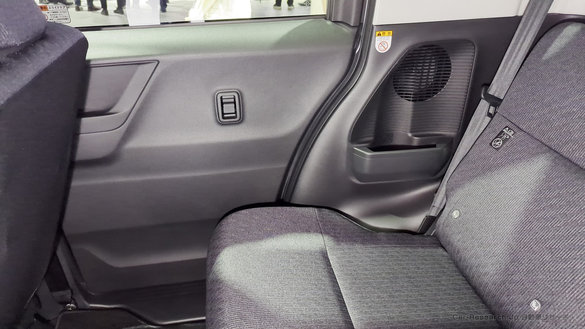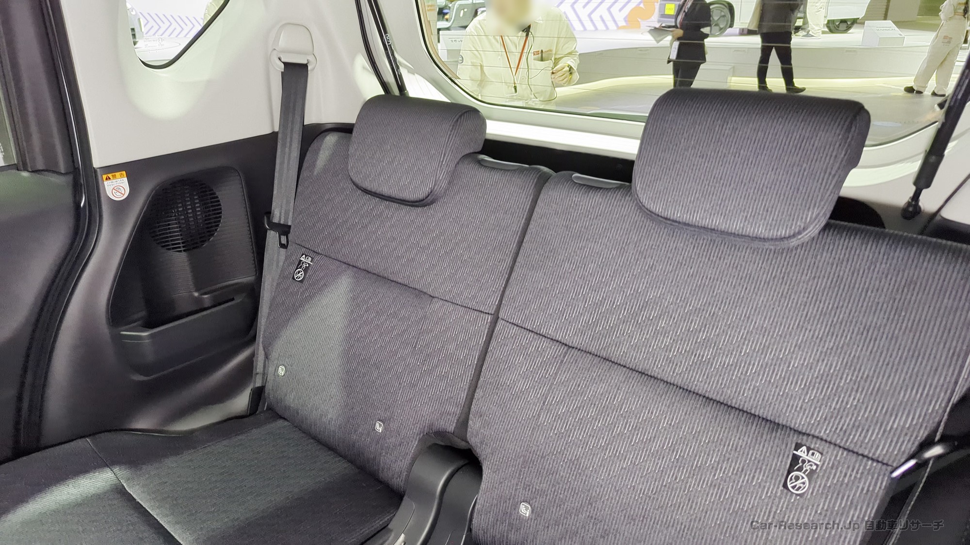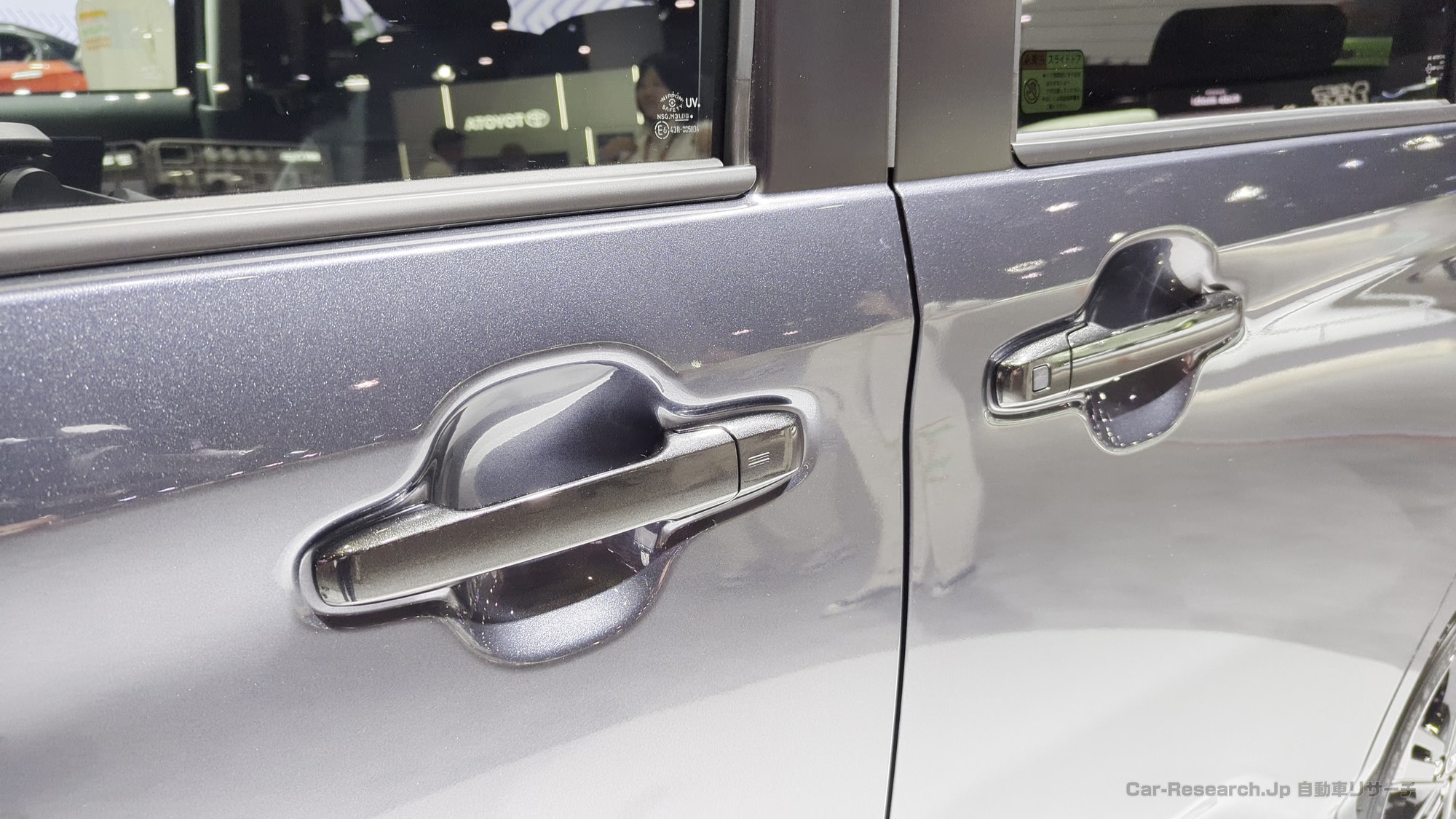 フロントからリアへ抜けるキャラクターラインや、ブラックアウト処理されたウインドウグラフィックによって、動きのあるサイドビューを表現しています。スライドドア車で見られがちな「のっぺりした」印象を避けるために、面の張りや線の通し方が綿密に調整されている点もポイントです。