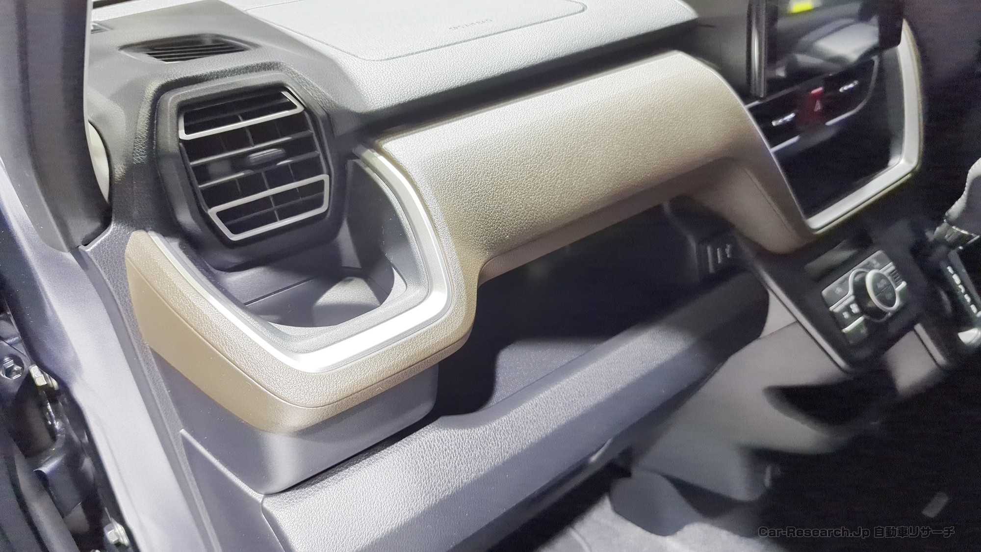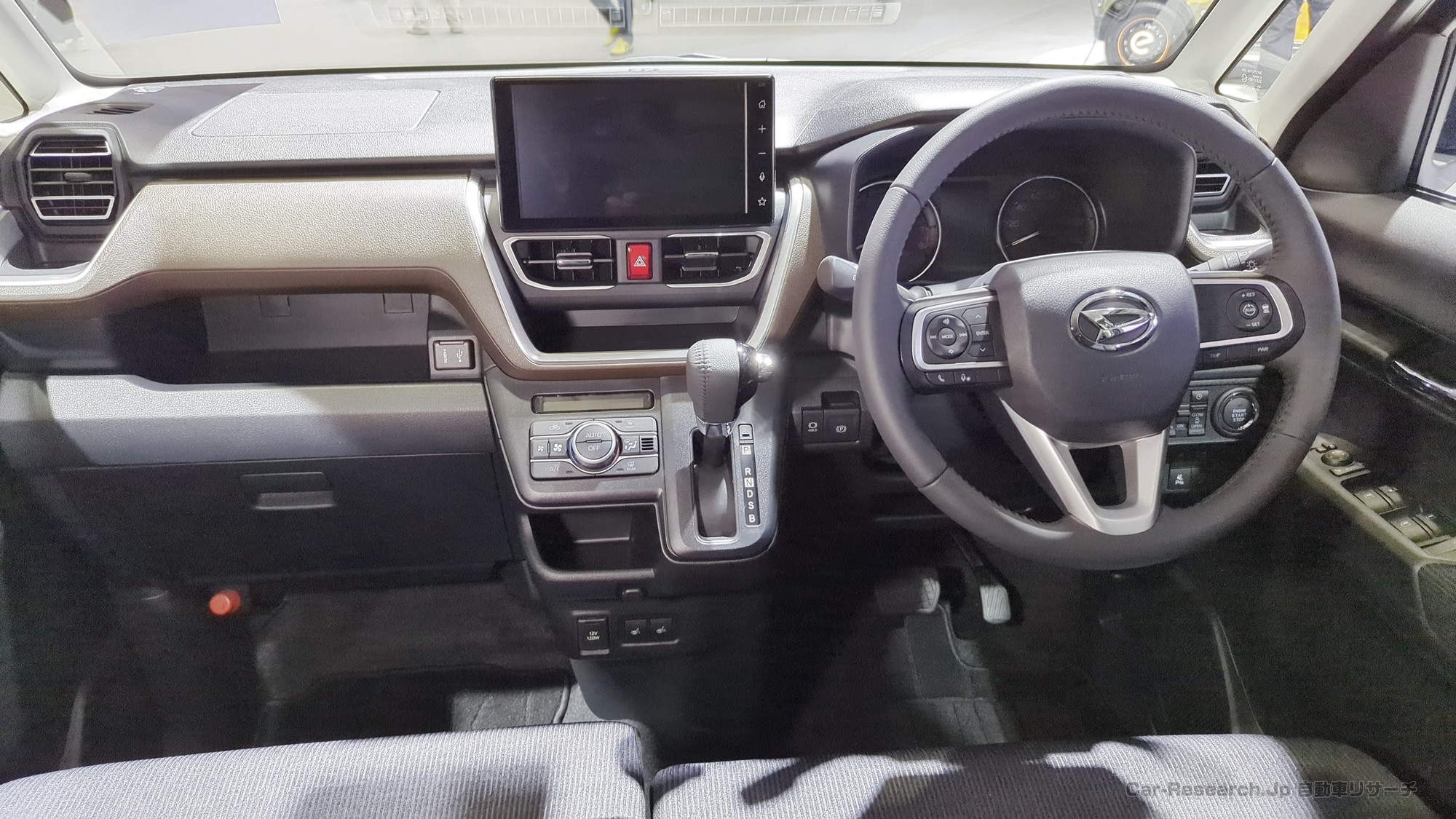 インテリアは、水平基調のインパネと大きなディスプレイオーディオを中心にレイアウトされています。運転中に視線を大きく動かさなくても必要な情報を確認できるように、メーターやスイッチ類の配置が工夫されています。シンプルで落ち着いた雰囲気の中に、質感の高い素材や加飾を織り込むことで、長く付き合える室内空間を目指した構成です。