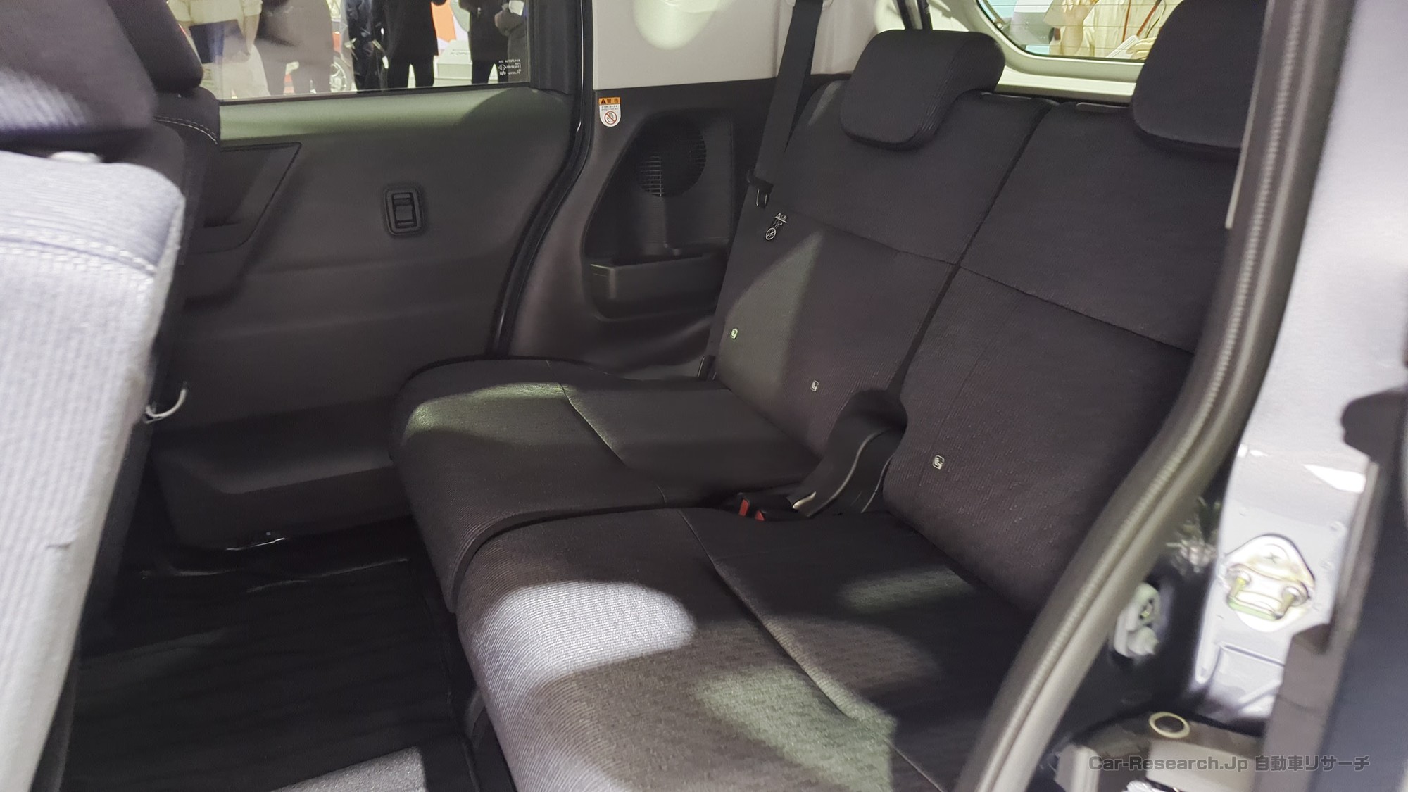 新型ムーヴの室内は、前後方向のゆとりを重視したパッケージングが特徴です。長めに取られたホイールベースを活かし、前席と後席の間隔をしっかり確保しているため、後席に座る大人のひざまわりにも余裕があります。リヤシートには左右分割ロングスライド機構が備わっており、後席を前に出せば荷室を広く、後ろに下げれば足元を広くといった調整が簡単に行えます。