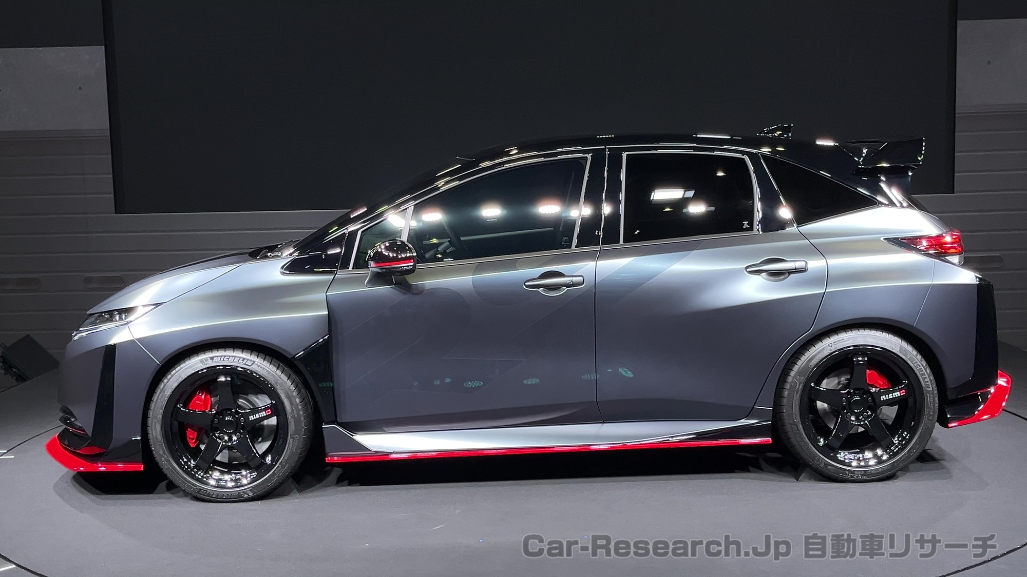 また、NISMOのアイコンである、レッドアクセントの「レイヤード・ダブルウイング」が採用され、低重心で、ローアンドワイドなフォルムが実現される。リニューアルしたNISMOのエンブレムは、マットクロームとマットレッド塗装の表面処理により、新世代NISMOの存在感が主張される。