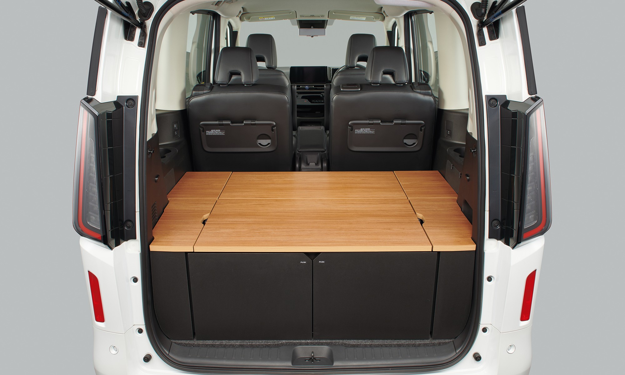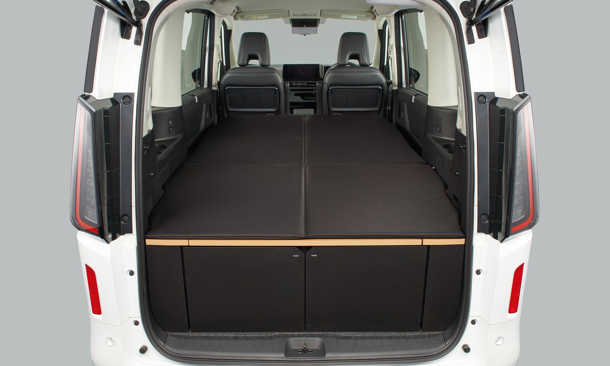 「セカンドスライドアップシート」は、助手席側のセカンドシートが回転・昇降する機能を備え、乗降をサポートします。「マルチベッド」は、ラゲッジスペースにベッドを設置し、アウトドアや車中泊での快適性を高めています。