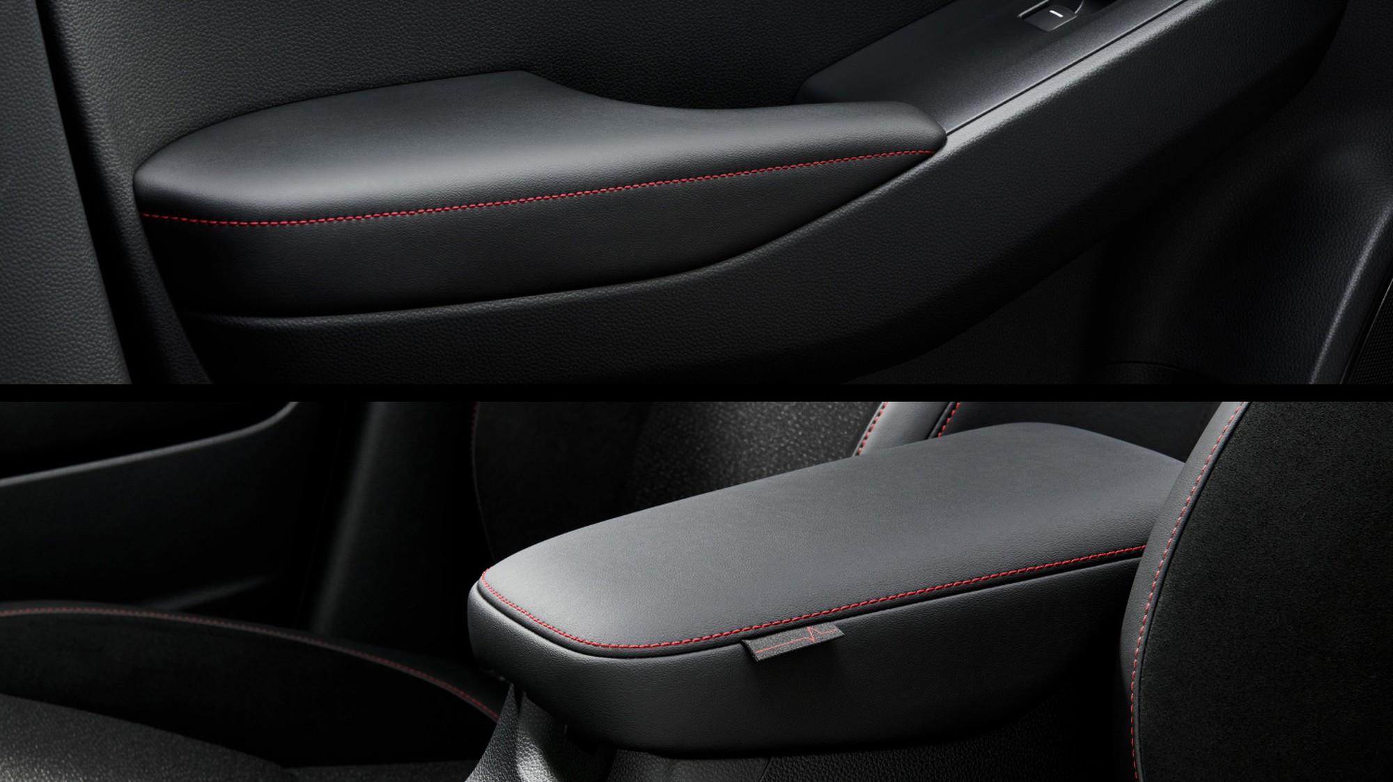 - ドアアームレスト、アームレスト付きセンターコンソールボックス〈レッドステッチ〉